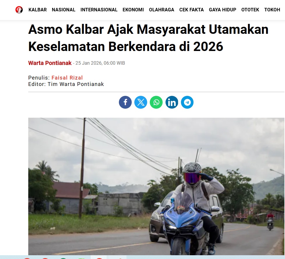 Asmo Kalbar Ajak Masyarakat Utamakan Keselamatan Berkendara di 2026 by Faisal Rizal 25 Januari 2026 in Silahkan kunjungi https://wartapontianak.pikiran-rakyat.com/gaya-hidup/pr-1179957218/asmo-kalbar-ajak-masyarakat-utamakan-keselamatan-berkendara-di-2026. You Might Like Regional Public Launching New ADV160 The SUV Pride Grand Launching New PCX 160 Truly Exceptional! Tetap hati-hati ya bro sist berkendara saat hujan.