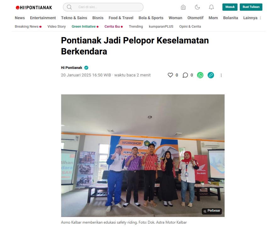 Asmo Kalbar Ajak Siswa SMKN 1 Pontianak Jadi Pelopor Keselamatan Berkendara by Leo Prima 20 Januari 2025 in Silahkan kunjungi https://kumparan.com/hipontianak/24L9Rxo1E1h?utm_source=App&utm_medium=wa&shareID=FIyZcfS1dY3s. Tags: Asmo Kalbar Astra Motor kalbar Honda Kalbar Keselamatan Berkendara Motor Honda PT AHM You Might Like Regional Public Launching New ADV160 The SUV Pride Grand Launching New PCX 160 Truly Exceptional! Tetap hati-hati ya bro sist berkendara saat hujan.