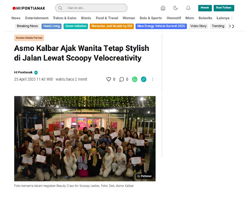 Asmo Kalbar Ajak Wanita Tetap Stylish di Jalan Lewat Scoopy Velocreativity by Leo Prima 25 April 2025 in Silahkan kunjungi https://kumparan.com/hipontianak/24wefkgG8er?utm_source=App&utm_medium=wa&shareID=H2eyN5XNM4Na. Tags: Asmo Kalbar Astra Motor kalbar Honda Kalbar PT AHM Scoopy Terbaru Scoopy Velocreativity You Might Like Regional Public Launching New ADV160 The SUV Pride Grand Launching New PCX 160 Truly Exceptional! Tetap hati-hati ya bro sist berkendara saat hujan.