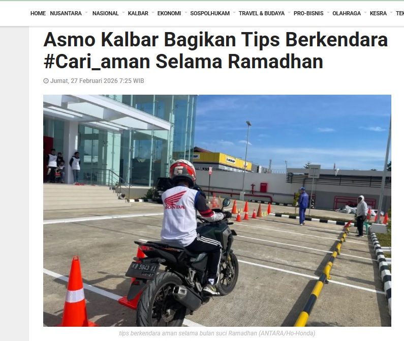 Asmo Kalbar Bagikan Tips Berkendara #Cari_aman Selama Ramadhan by Dedi 27 Februari 2026 in Silahkan kunjungi https://kalbar.antaranews.com/berita/691578/asmo-kalbar-bagikan-tips-berkendara-cari-aman-selama-ramadhan. You Might Like Regional Public Launching New ADV160 The SUV Pride Grand Launching New PCX 160 Truly Exceptional! Tetap hati-hati ya bro sist berkendara saat hujan.