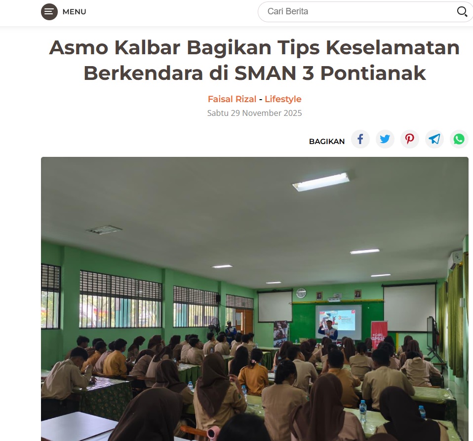 Asmo Kalbar Bagikan Tips Keselamatan Berkendara di SMAN 3 Pontianak by Dodi Dodi 29 November 2025 in Silahkan kunjungi https://harianberkat.com/2025/11/29/asmo-kalbar-bagikan-tips-keselamatan-berkendara-di-sman-3-pontianak/. You Might Like Regional Public Launching New ADV160 The SUV Pride Grand Launching New PCX 160 Truly Exceptional! Tetap hati-hati ya bro sist berkendara saat hujan.