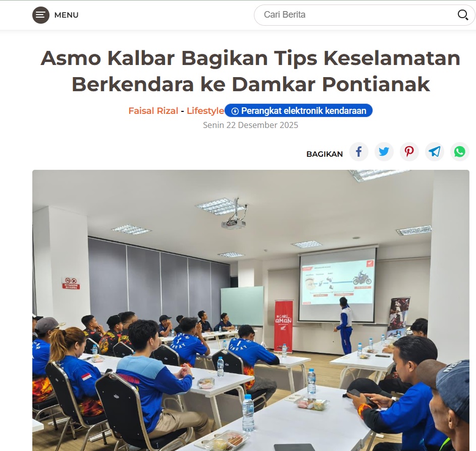 Asmo Kalbar Bagikan Tips Keselamatan Berkendara ke Damkar Pontianak by Dodi Dodi 22 Desember 2025 in Silahkan kunjungi https://harianberkat.com/2025/12/22/asmo-kalbar-bagikan-tips-keselamatan-berkendara-ke-damkar-pontianak/. You Might Like Regional Public Launching New ADV160 The SUV Pride Grand Launching New PCX 160 Truly Exceptional! Tetap hati-hati ya bro sist berkendara saat hujan.