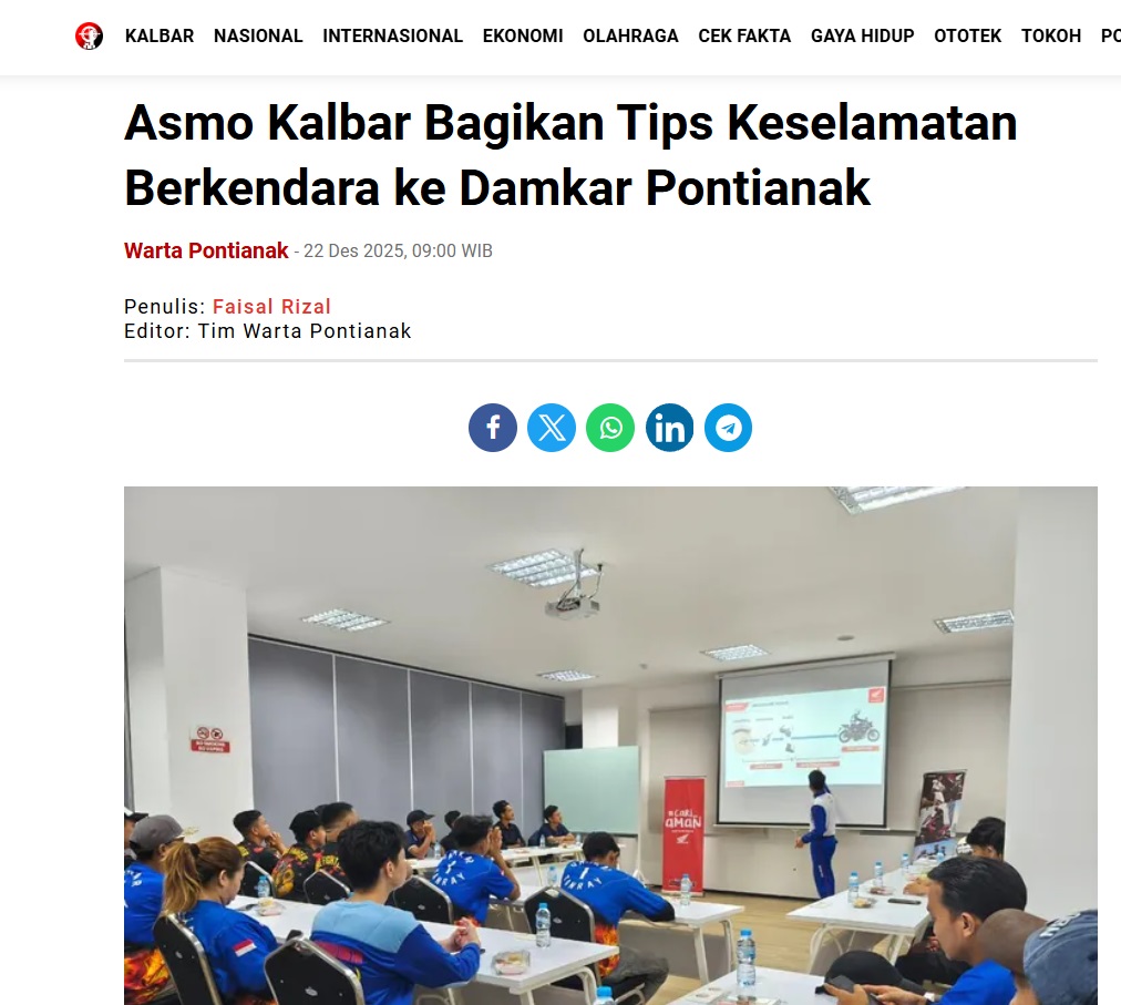 Asmo Kalbar Bagikan Tips Keselamatan Berkendara ke Damkar Pontianak by Faisal Rizal 22 Desember 2025 in Silahkan kunjungi https://wartapontianak.pikiran-rakyat.com/gaya-hidup/pr-1179879047/asmo-kalbar-bagikan-tips-keselamatan-berkendara-ke-damkar-pontianak. You Might Like Regional Public Launching New ADV160 The SUV Pride Grand Launching New PCX 160 Truly Exceptional! Tetap hati-hati ya bro sist berkendara saat hujan.