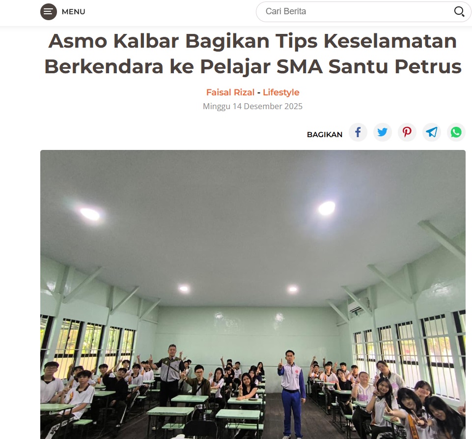 Asmo Kalbar Bagikan Tips Keselamatan Berkendara ke Pelajar SMA Santu Petrus by Dodi Dodi 14 Desember 2025 in Silahkan kunjungi https://harianberkat.com/2025/12/14/asmo-kalbar-bagikan-tips-keselamatan-berkendara-ke-pelajar-sma-santu-petrus/. You Might Like Regional Public Launching New ADV160 The SUV Pride Grand Launching New PCX 160 Truly Exceptional! Tetap hati-hati ya bro sist berkendara saat hujan.