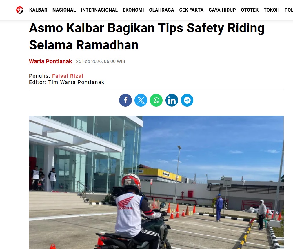 Asmo Kalbar Bagikan Tips Safety Riding Selama Ramadhan by Faisal Rizal 25 Februari 2026 in Silahkan kunjungi https://wartapontianak.pikiran-rakyat.com/gaya-hidup/pr-11710033393/asmo-kalbar-bagikan-tips-safety-riding-selama-ramadhan. You Might Like Regional Public Launching New ADV160 The SUV Pride Grand Launching New PCX 160 Truly Exceptional! Tetap hati-hati ya bro sist berkendara saat hujan.