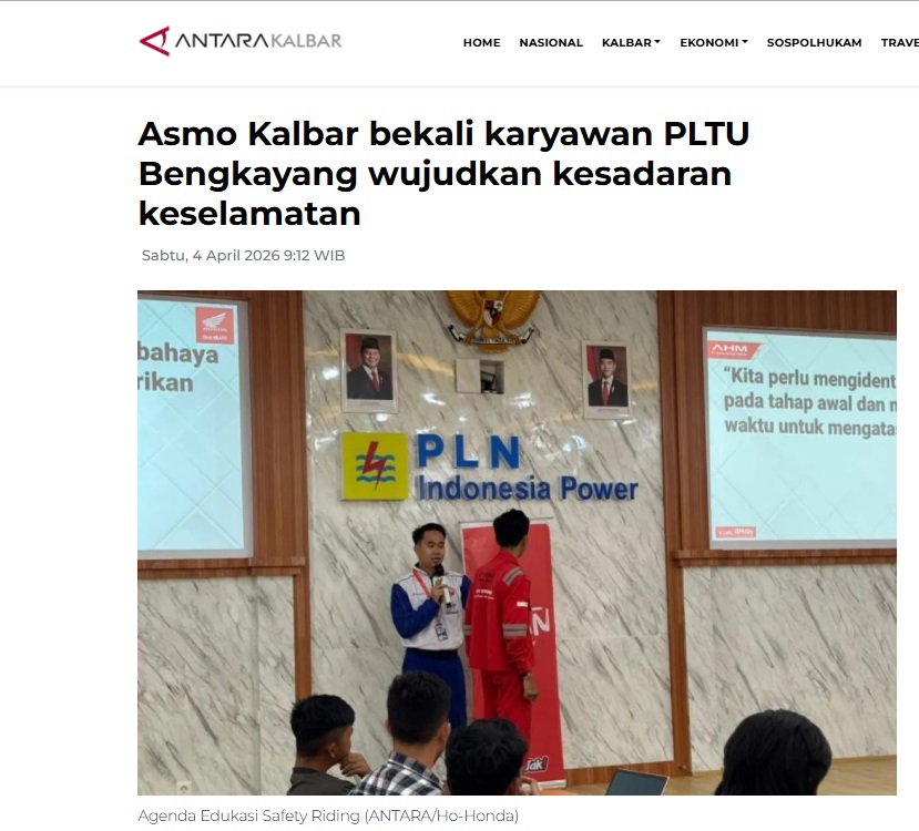 Asmo Kalbar bekali karyawan PLTU Bengkayang wujudkan kesadaran keselamatan by Dedi 4 April 2026 in Silahkan kunjungi https://kalbar.antaranews.com/berita/696957/asmo-kalbar-bekali-karyawan-pltu-bengkayang-wujudkan-kesadaran-keselamatan. You Might Like Regional Public Launching New ADV160 The SUV Pride Grand Launching New PCX 160 Truly Exceptional! Tetap hati-hati ya bro sist berkendara saat hujan.