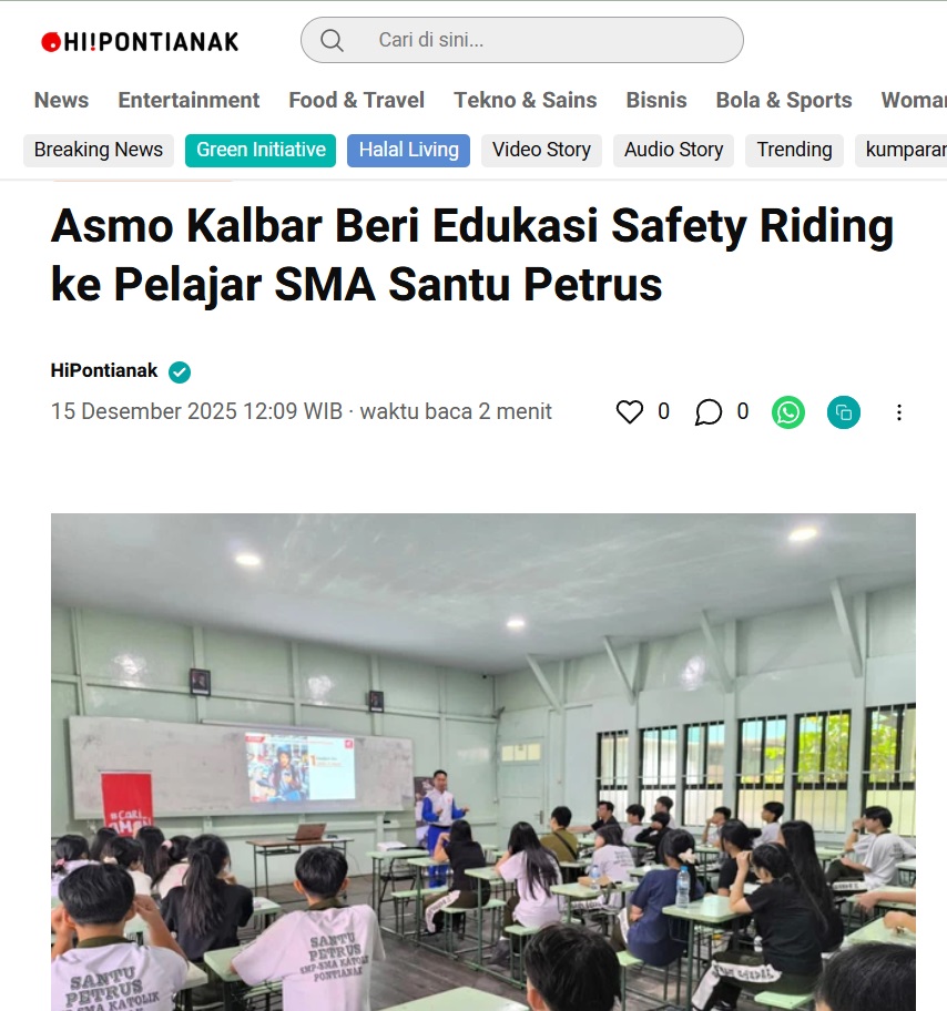 Asmo Kalbar Beri Edukasi Safety Riding ke Pelajar SMA Santu Petrus by Leo Prima 15 Desember 2025 in Silahkan kunjungi https://kumparan.com/hipontianak/26RFwT6MHLn?utm_source=App&utm_medium=wa&shareID=WAm6wGPfEYZA. You Might Like Regional Public Launching New ADV160 The SUV Pride Grand Launching New PCX 160 Truly Exceptional! Tetap hati-hati ya bro sist berkendara saat hujan.