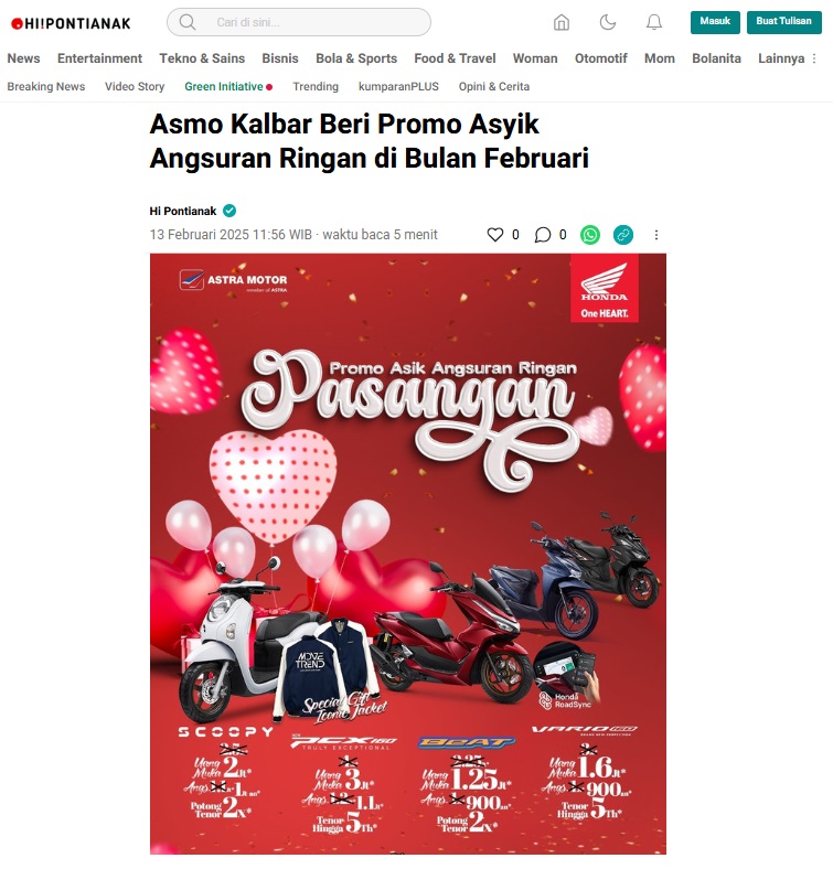 Asmo Kalbar Beri Promo Asyik Angsuran Ringan di Bulan Februari by Leo Prima 13 Februari 2025 in Silahkan kunjungi https://kumparan.com/hipontianak/24UYoLMpwZG?utm_source=App&utm_medium=wa&shareID=i8eyq5PUjjMG. Tags: Angsuran Ringan Asmo Kalbar Astra Motor kalbar Honda Kalbar Motor Honda Promo Asyik PT AHM You Might Like Regional Public Launching New ADV160 The SUV Pride Grand Launching New PCX 160 Truly Exceptional! Tetap hati-hati ya bro sist berkendara saat hujan.