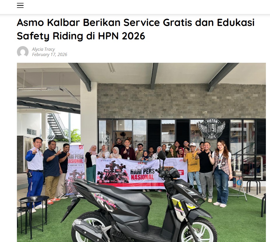 Asmo Kalbar Berikan Service Gratis dan Edukasi Safety Riding di HPN 2026 by Tracy 17 Februari 2026 in Silahkan kunjungi https://hipontianak.com/asmo-kalbar-berikan-service-gratis-dan-edukasi-safety-riding-di-hpn-2026/. You Might Like Regional Public Launching New ADV160 The SUV Pride Grand Launching New PCX 160 Truly Exceptional! Tetap hati-hati ya bro sist berkendara saat hujan.