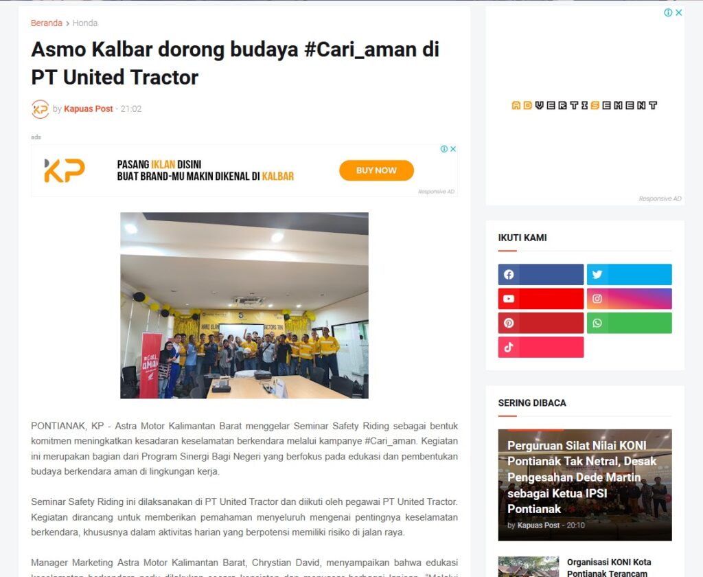 Asmo Kalbar dorong budaya #Cari_aman di PT United Tractor by Muhammad Arif 19 Desember 2025 in Silahkan kunjungi https://www.kapuaspost.web.id/2025/12/asmo-kalbar-dorong-budaya-cariaman-di.html. Tags: astra Astra Motor kalbar Astra Motor Pontianak astramotor honda kalbar pontianak sepeda motor You Might Like Regional Public Launching New ADV160 The SUV Pride Grand Launching New PCX 160 Truly Exceptional! Tetap hati-hati ya bro sist berkendara saat hujan.