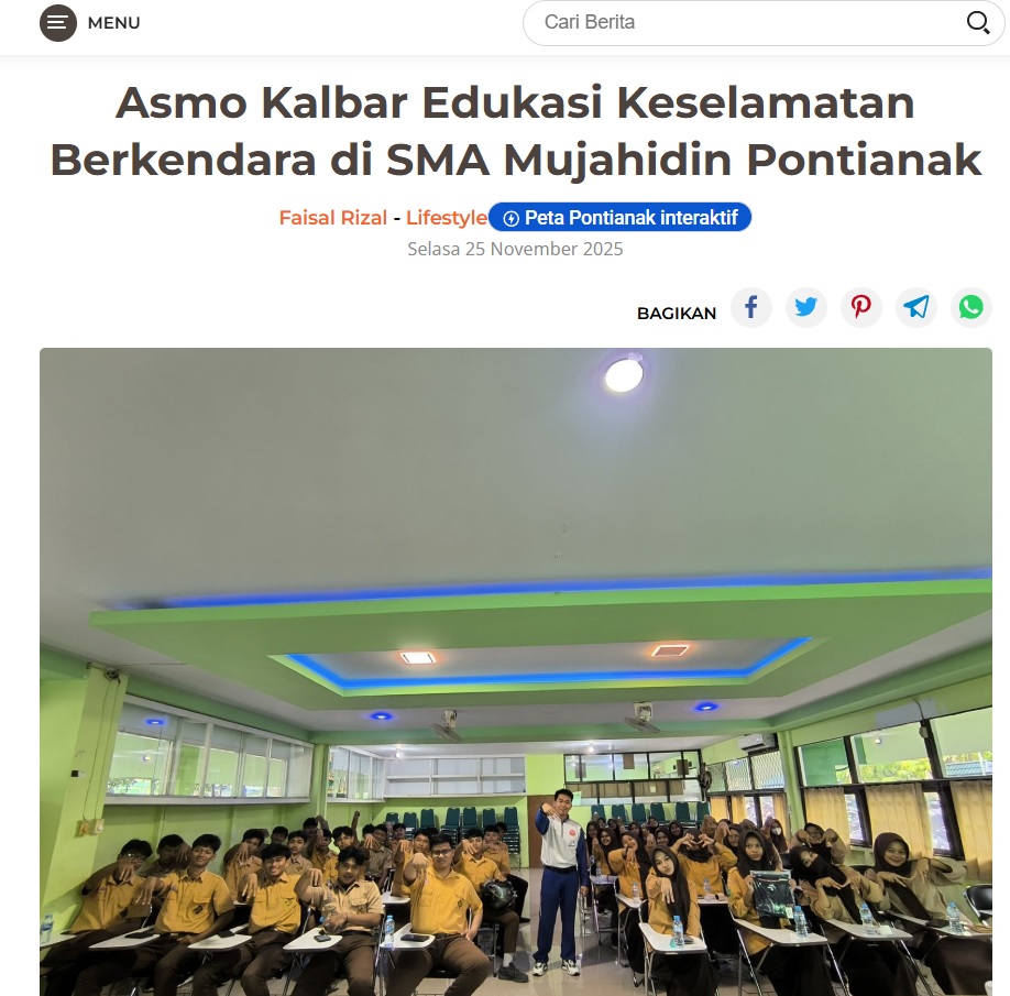 Asmo Kalbar Edukasi Keselamatan Berkendara di SMA Mujahidin Pontianak by Dodi Dodi 25 November 2025 in Silahkan kunjungi https://harianberkat.com/2025/11/25/asmo-kalbar-edukasi-keselamatan-berkendara-di-sma-mujahidin-pontianak/. You Might Like Regional Public Launching New ADV160 The SUV Pride Grand Launching New PCX 160 Truly Exceptional! Tetap hati-hati ya bro sist berkendara saat hujan.