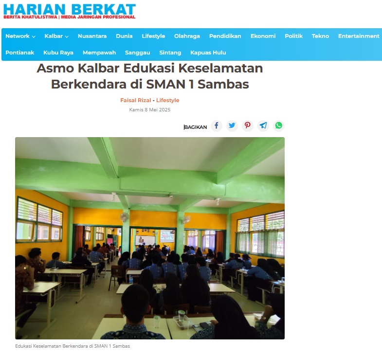 Asmo Kalbar Edukasi Keselamatan Berkendara di SMAN 1 Sambas by Dodi Dodi 8 Mei 2025 in Silahkan kunjungi https://harianberkat.com/2025/05/08/asmo-kalbar-edukasi-keselamatan-berkendara-di-sman-1-sambas/. Tags: Asmo Kalbar Astra Motor kalbar Edukasi Keselamatan Honda Kalbar Ini Cara PT AHM Gelar Edukasi Safety Riding di Tengah Pandemi Keselamatan Berkendara Motor Honda PT AHM You Might Like Regional Public Launching New ADV160 The SUV Pride Grand Launching New PCX 160 Truly Exceptional! Tetap hati-hati ya bro sist berkendara saat hujan.