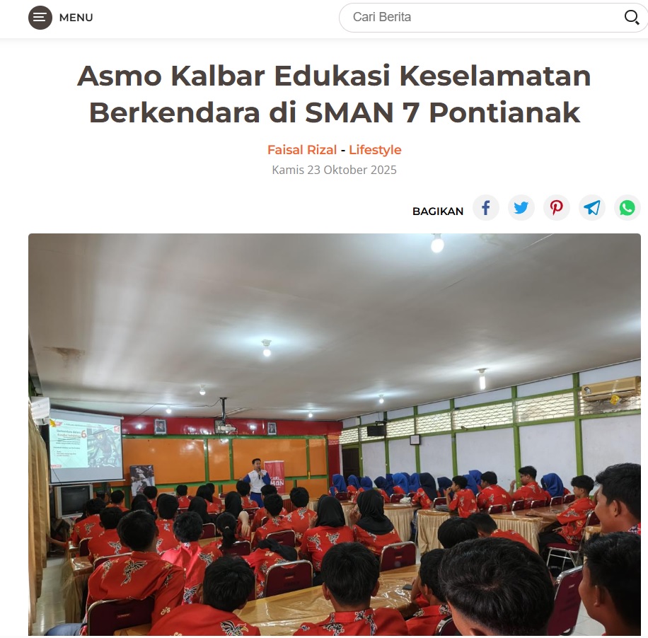 Asmo Kalbar Edukasi Keselamatan Berkendara di SMAN 7 Pontianak by Dodi Dodi 23 Oktober 2025 in Silahkan kunjungi https://harianberkat.com/2025/10/23/asmo-kalbar-edukasi-keselamatan-berkendara-di-sman-7-pontianak/. You Might Like Regional Public Launching New ADV160 The SUV Pride Grand Launching New PCX 160 Truly Exceptional! Tetap hati-hati ya bro sist berkendara saat hujan.