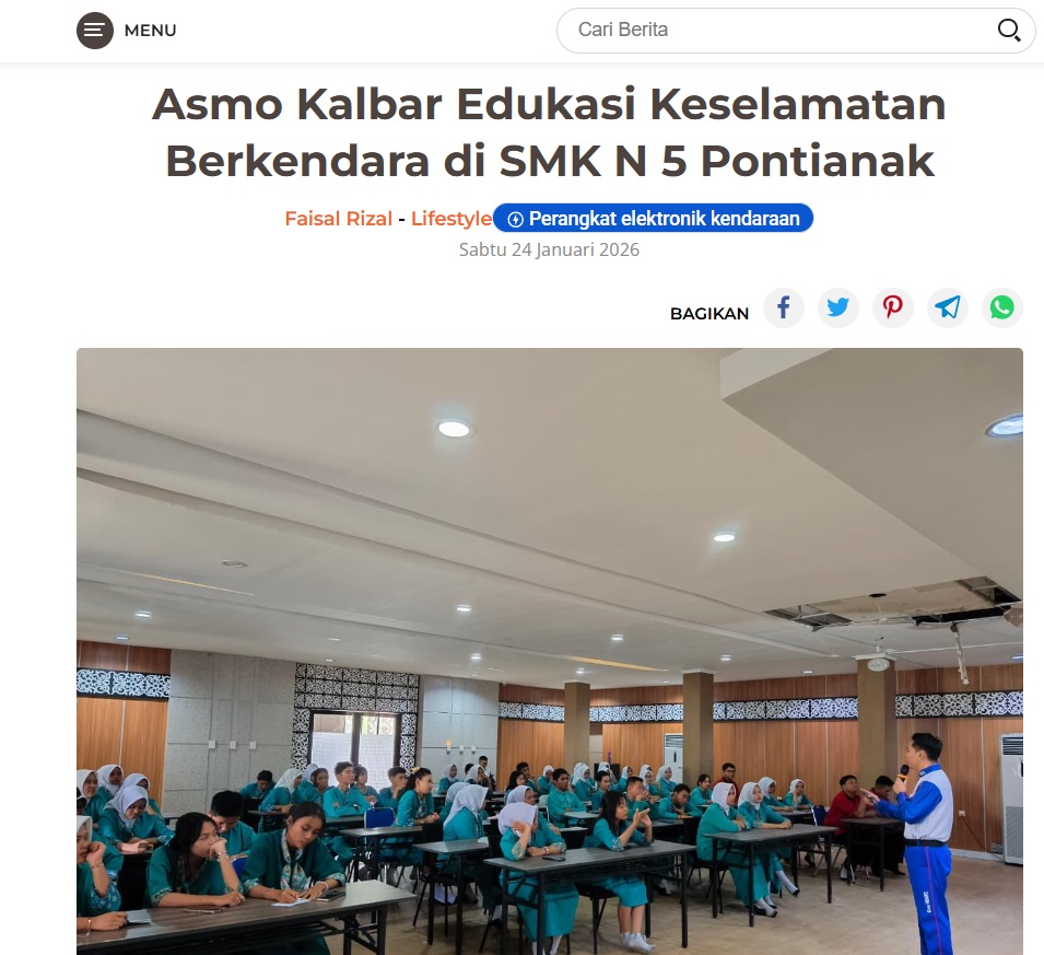 Asmo Kalbar Edukasi Keselamatan Berkendara di SMK N 5 Pontianak by Dodi Dodi 24 Januari 2026 in Silahkan kunjungi https://harianberkat.com/2026/01/24/asmo-kalbar-edukasi-keselamatan-berkendara-di-smk-n-5-pontianak/. You Might Like Regional Public Launching New ADV160 The SUV Pride Grand Launching New PCX 160 Truly Exceptional! Tetap hati-hati ya bro sist berkendara saat hujan.