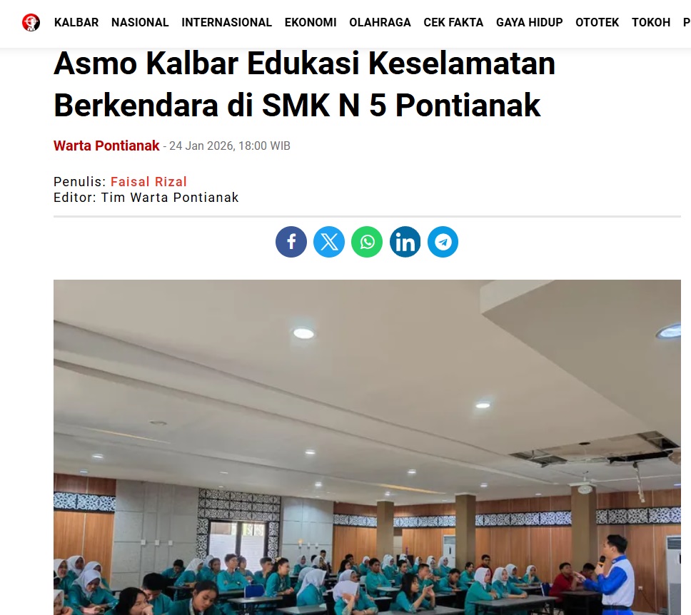 Asmo Kalbar Edukasi Keselamatan Berkendara di SMK N 5 Pontianak by Faisal Rizal 24 Januari 2026 in Silahkan kunjungi https://wartapontianak.pikiran-rakyat.com/gaya-hidup/pr-1179955119/asmo-kalbar-edukasi-keselamatan-berkendara-di-smk-n-5-pontianak. You Might Like Regional Public Launching New ADV160 The SUV Pride Grand Launching New PCX 160 Truly Exceptional! Tetap hati-hati ya bro sist berkendara saat hujan.
