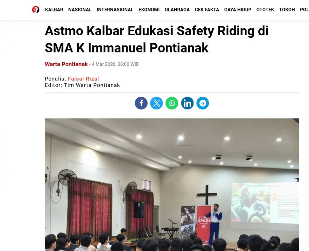 Asmo Kalbar Edukasi Safety Riding di SMA K Immanuel Pontianak by Faisal Rizal 4 Maret 2026 in Silahkan kunjungi https://wartapontianak.pikiran-rakyat.com/gaya-hidup/pr-11710051389/astmo-kalbar-edukasi-safety-riding-di-sma-k-immanuel-pontianak. You Might Like Regional Public Launching New ADV160 The SUV Pride Grand Launching New PCX 160 Truly Exceptional! Tetap hati-hati ya bro sist berkendara saat hujan.