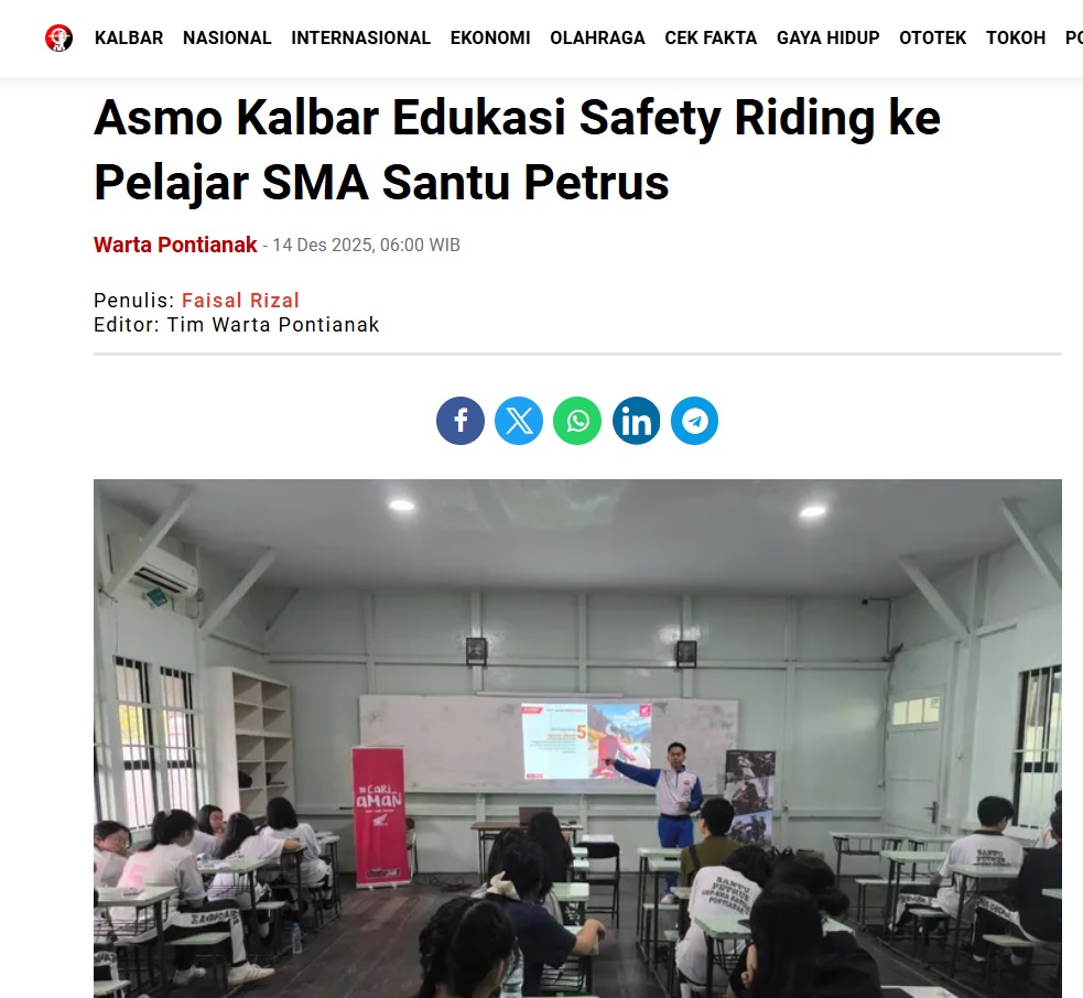 Asmo Kalbar Edukasi Safety Riding ke Pelajar SMA Santu Petrus by Faisal Rizal 14 Desember 2025 in Silahkan kunjungi https://wartapontianak.pikiran-rakyat.com/gaya-hidup/pr-1179861350/asmo-kalbar-edukasi-safety-riding-ke-pelajar-sma-santu-petrus. You Might Like Regional Public Launching New ADV160 The SUV Pride Grand Launching New PCX 160 Truly Exceptional! Tetap hati-hati ya bro sist berkendara saat hujan.