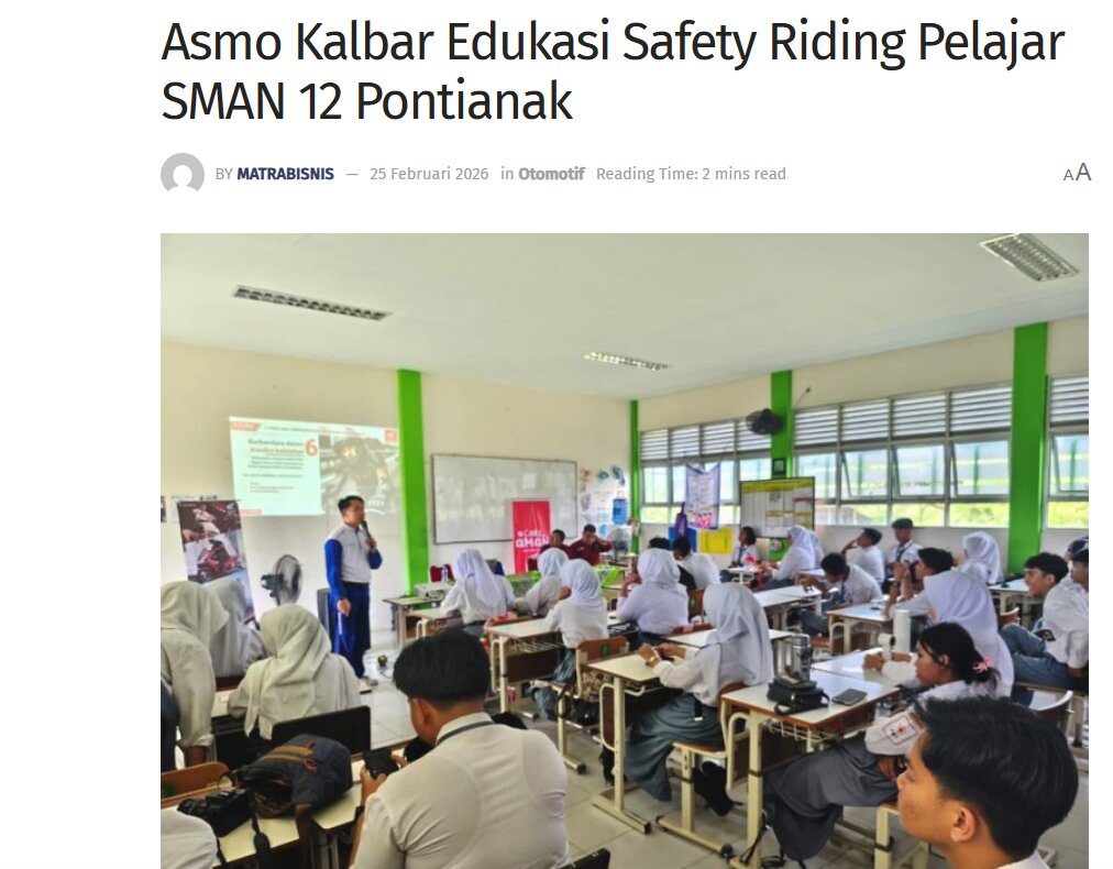 Asmo Kalbar Edukasi Safety Riding Pelajar SMAN 12 Pontianak by Sri Yuliantiningsih 25 Februari 2026 in Silahkan kunjungi https://matrabisnis.id/2026/02/25/asmo-kalbar-edukasi-safety-riding-pelajar-sman-12-pontianak/. You Might Like Regional Public Launching New ADV160 The SUV Pride Grand Launching New PCX 160 Truly Exceptional! Tetap hati-hati ya bro sist berkendara saat hujan.