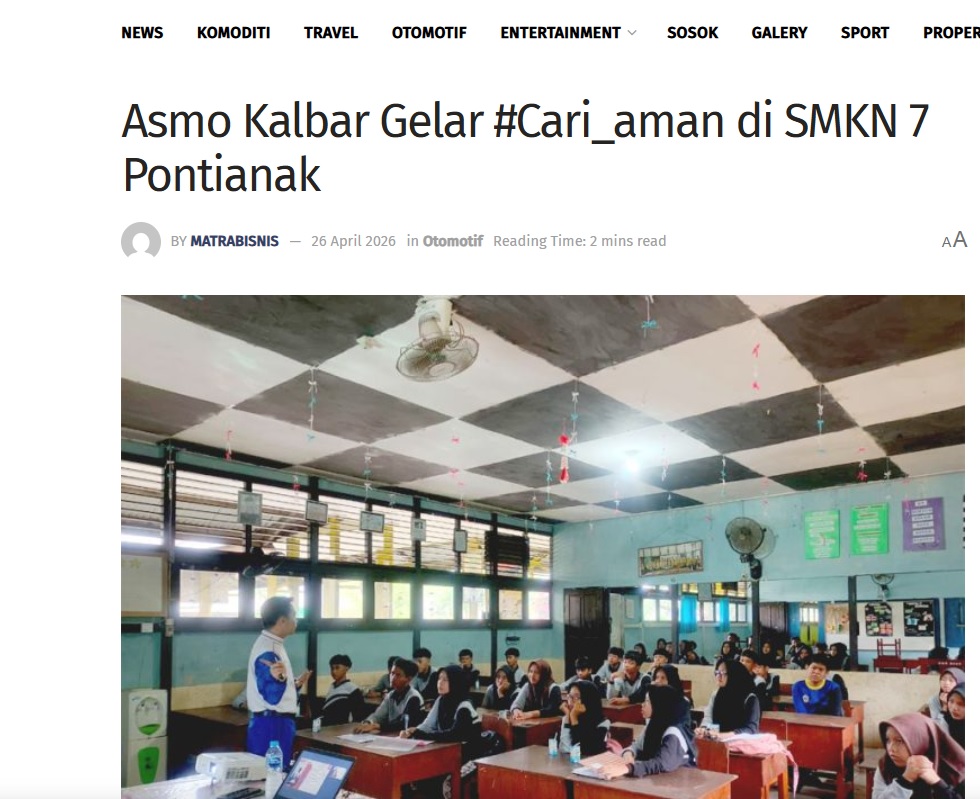 Asmo Kalbar Gelar #Cari_aman di SMKN 7 Pontianak by Sri Yuliantiningsih 26 April 2026 in Silahkan kunjungi https://matrabisnis.id/2026/04/26/asmo-kalbar-gelar-cari_aman-di-smkn-7-pontianak/. You Might Like Regional Public Launching New ADV160 The SUV Pride Grand Launching New PCX 160 Truly Exceptional! Tetap hati-hati ya bro sist berkendara saat hujan.