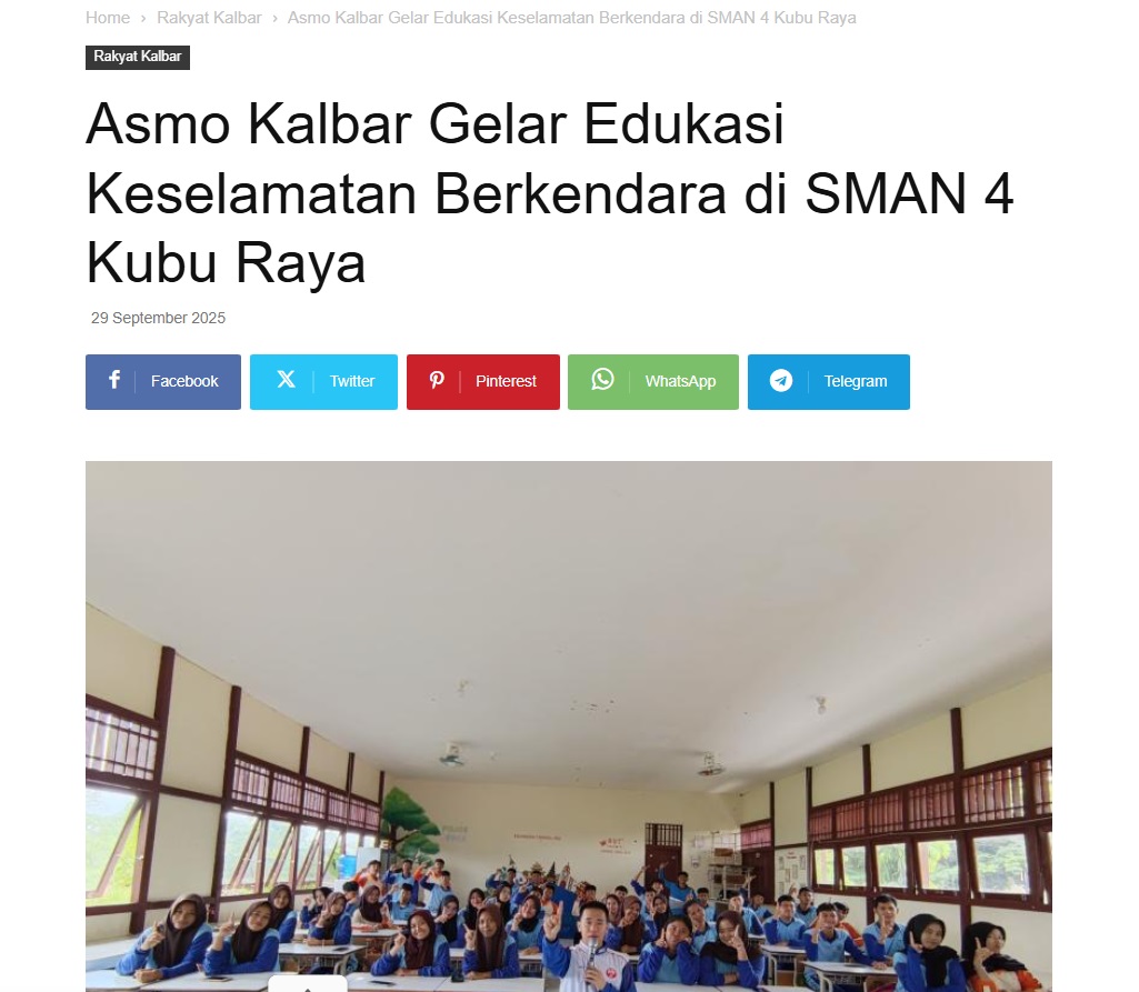Asmo Kalbar Gelar Edukasi Keselamatan Berkendara di SMAN 4 Kubu Raya by Nova Sari 29 September 2025 in Silahkan kunjungi https://equator.co.id/asmo-kalbar-gelar-edukasi-keselamatan-berkendara-di-sman-4-kubu-raya/. You Might Like Regional Public Launching New ADV160 The SUV Pride Grand Launching New PCX 160 Truly Exceptional! Tetap hati-hati ya bro sist berkendara saat hujan.