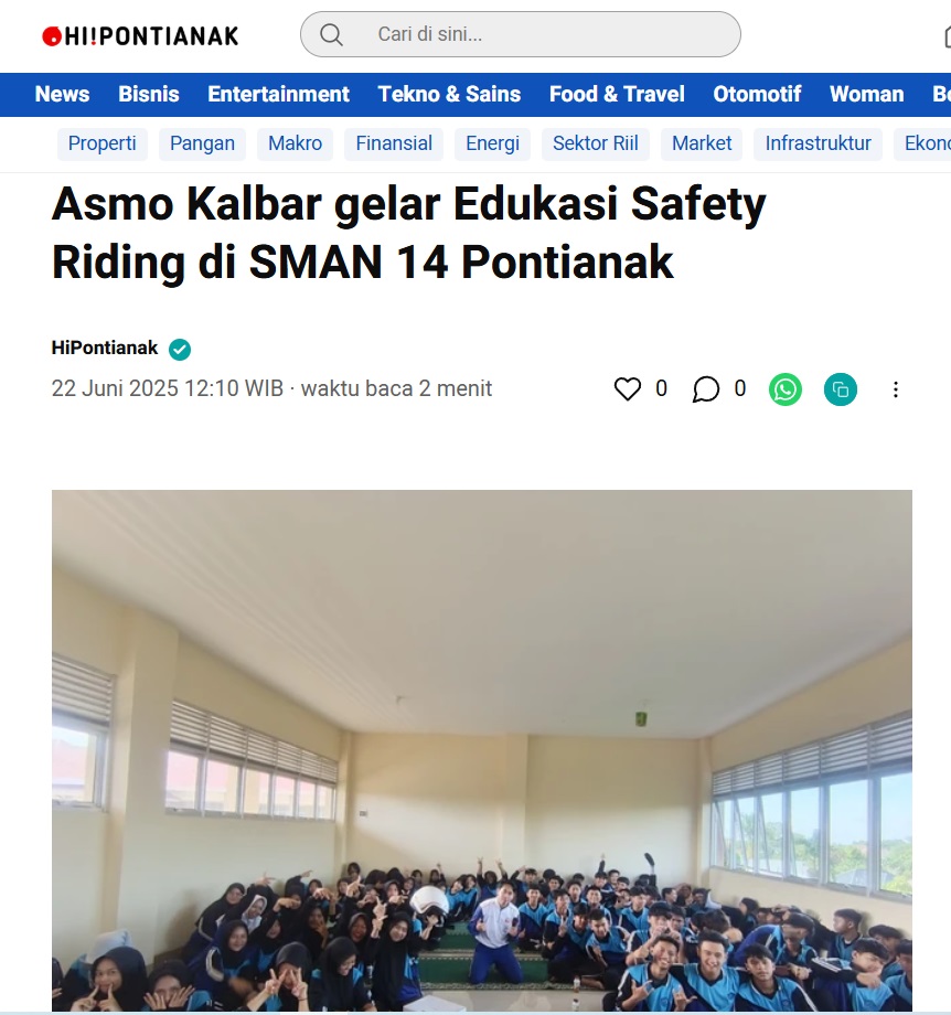 Asmo Kalbar gelar Edukasi Safety Riding di SMAN 14 Pontianak by Leo Prima 22 Juni 2025 in Silahkan kunjungi https://kumparan.com/hipontianak/25JcIxsLMFu?utm_source=App&utm_medium=wa&shareID=ZbjeflcZBxGC. You Might Like Regional Public Launching New ADV160 The SUV Pride Grand Launching New PCX 160 Truly Exceptional! Tetap hati-hati ya bro sist berkendara saat hujan.
