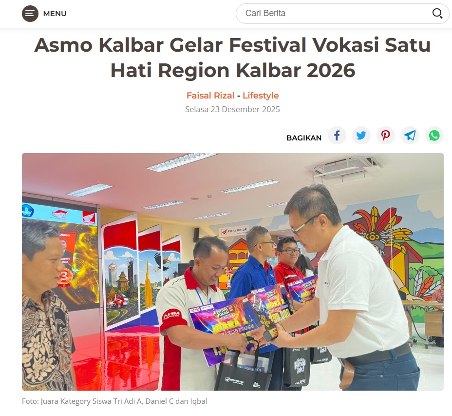 Asmo Kalbar Gelar Festival Vokasi Satu Hati Region Kalbar 2026 by Dodi Dodi 23 Desember 2025 in Silahkan kunjungi https://harianberkat.com/2025/12/23/asmo-kalbar-gelar-festival-vokasi-satu-hati-region-kalbar-2026/. You Might Like Regional Public Launching New ADV160 The SUV Pride Grand Launching New PCX 160 Truly Exceptional! Tetap hati-hati ya bro sist berkendara saat hujan.