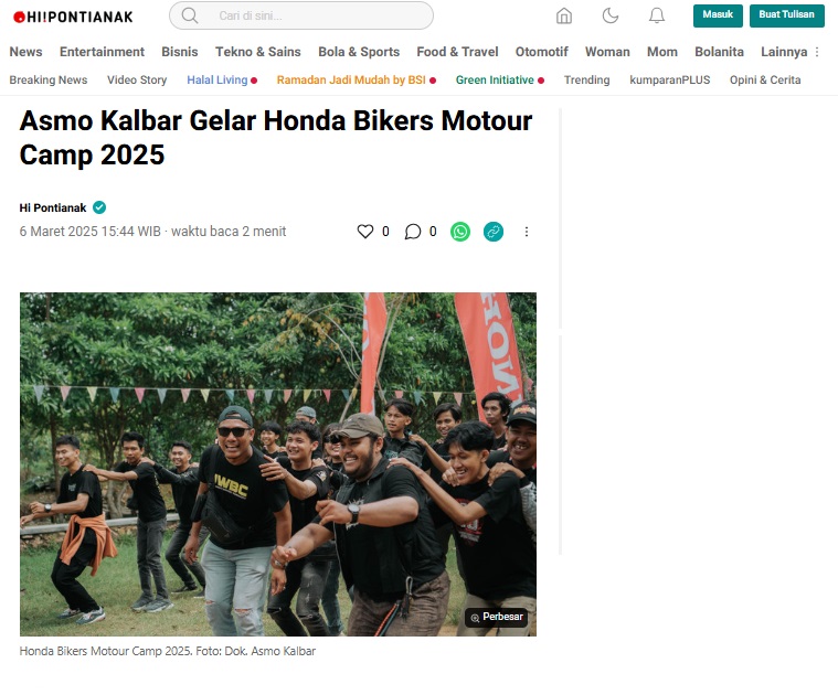 Asmo Kalbar Gelar Honda Bikers Motour Camp 2025 by Leo Prima 6 Maret 2025 in Silahkan kunjungi https://kumparan.com/hipontianak/24cwOfTIXLK?utm_source=App&utm_medium=wa&shareID=bs0HcwGJjQ01. Tags: Asmo Kalbar Astra Motor kalbar Bikers Motour Camp 2025 Honda Kalbar Motor Honda PT AHM You Might Like Regional Public Launching New ADV160 The SUV Pride Grand Launching New PCX 160 Truly Exceptional! Tetap hati-hati ya bro sist berkendara saat hujan.