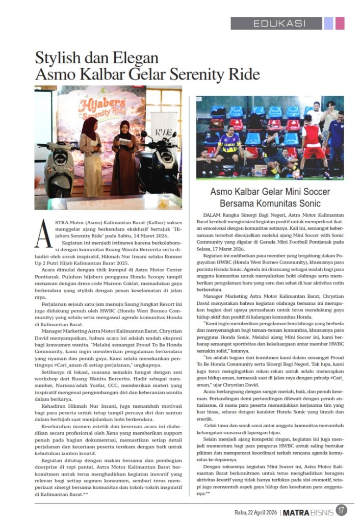 Asmo Kalbar Gelar Mini Soccer Bersama Komunitas Sonic by Sri Yuliantiningsih 22 April 2026 in Silahkan buka . You Might Like Regional Public Launching New ADV160 The SUV Pride Grand Launching New PCX 160 Truly Exceptional! Tetap hati-hati ya bro sist berkendara saat hujan.