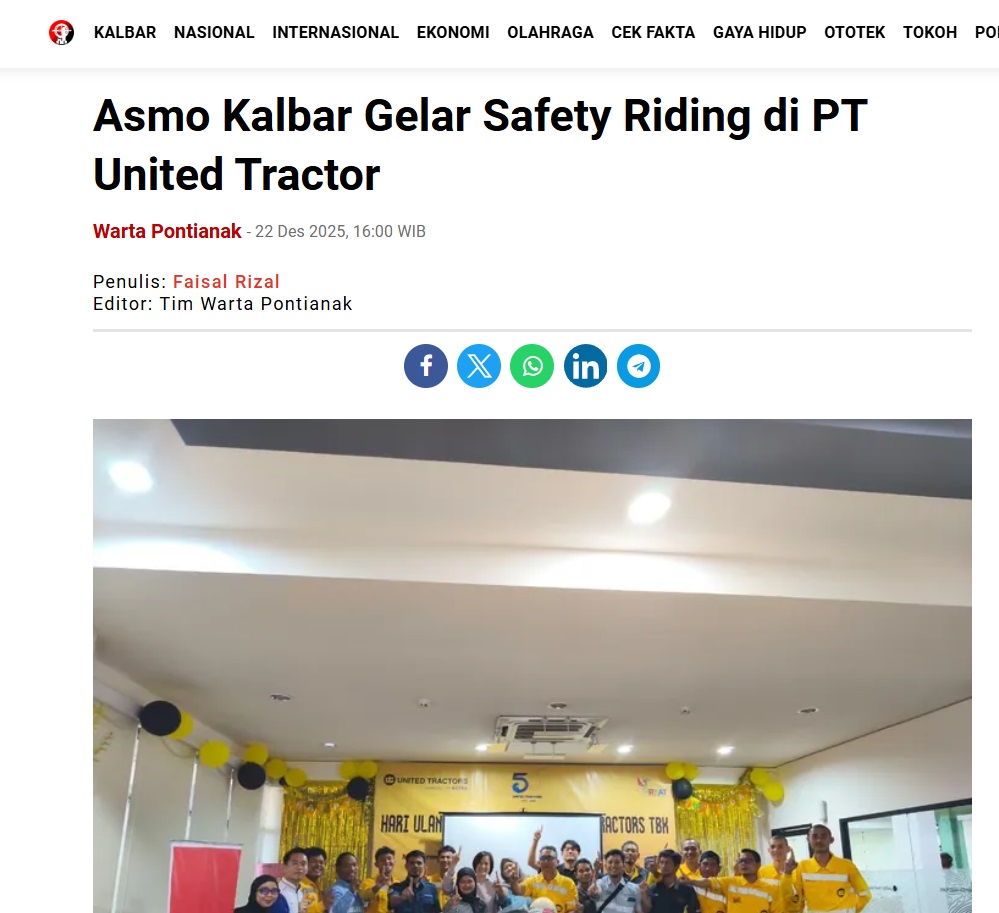 Asmo Kalbar Gelar Safety Riding di PT United Tractor by Faisal Rizal 22 Desember 2025 in Silahkan kunjungi https://wartapontianak.pikiran-rakyat.com/gaya-hidup/pr-1179879079/asmo-kalbar-gelar-safety-riding-di-pt-united-tractor. You Might Like Regional Public Launching New ADV160 The SUV Pride Grand Launching New PCX 160 Truly Exceptional! Tetap hati-hati ya bro sist berkendara saat hujan.