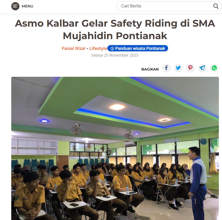 Asmo Kalbar Gelar Safety Riding di SMA Mujahidin Pontianak by Dodi Dodi 25 November 2025 in Silahkan kunjungi https://harianberkat.com/2025/11/25/asmo-kalbar-gelar-safety-riding-di-sma-mujahidin-pontianak/. You Might Like Regional Public Launching New ADV160 The SUV Pride Grand Launching New PCX 160 Truly Exceptional! Tetap hati-hati ya bro sist berkendara saat hujan.