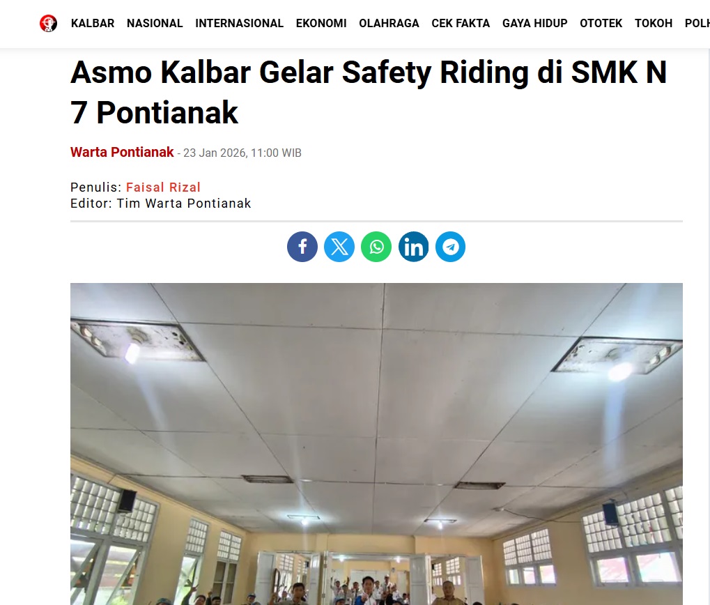 Asmo Kalbar Gelar Safety Riding di SMK N 7 Pontianak by Faisal Rizal 23 Januari 2026 in Silahkan kunjungi https://wartapontianak.pikiran-rakyat.com/gaya-hidup/pr-1179952379/asmo-kalbar-gelar-safety-riding-di-smk-n-7-pontianak. You Might Like Regional Public Launching New ADV160 The SUV Pride Grand Launching New PCX 160 Truly Exceptional! Tetap hati-hati ya bro sist berkendara saat hujan.
