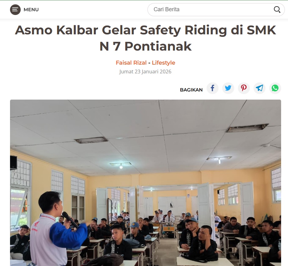Asmo Kalbar Gelar Safety Riding di SMK N 7 Pontianak by Dodi Dodi 23 Januari 2026 in Silahkan kunjungi https://harianberkat.com/2026/01/23/asmo-kalbar-gelar-safety-riding-di-smk-n-7-pontianak/#google_vignette. You Might Like Regional Public Launching New ADV160 The SUV Pride Grand Launching New PCX 160 Truly Exceptional! Tetap hati-hati ya bro sist berkendara saat hujan.