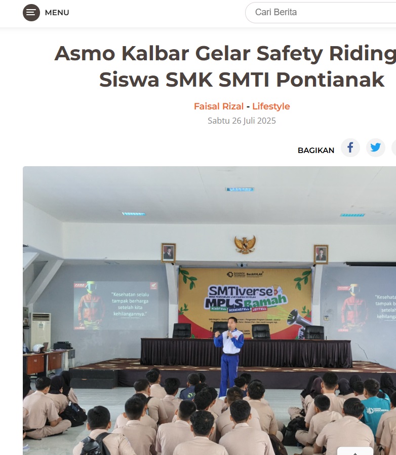 Asmo Kalbar Gelar Safety Riding ke Siswa SMK SMTI Pontianak by Dodi Dodi 26 Juli 2025 in Silahkan kunjungi https://harianberkat.com/2025/07/26/asmo-kalbar-gelar-safety-riding-ke-siswa-smk-smti-pontianak/#google_vignette. You Might Like Regional Public Launching New ADV160 The SUV Pride Grand Launching New PCX 160 Truly Exceptional! Tetap hati-hati ya bro sist berkendara saat hujan.