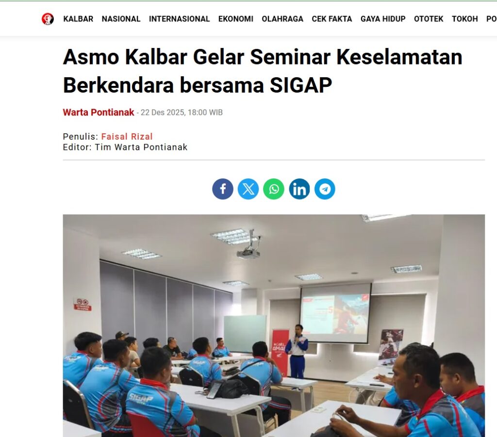 Asmo Kalbar Gelar Seminar Keselamatan Berkendara bersama SIGAP by Faisal Rizal 22 Desember 2025 in Silahkan kunjungi https://wartapontianak.pikiran-rakyat.com/gaya-hidup/pr-1179879003/asmo-kalbar-gelar-seminar-keselamatan-berkendara-bersama-sigap. You Might Like Regional Public Launching New ADV160 The SUV Pride Grand Launching New PCX 160 Truly Exceptional! Tetap hati-hati ya bro sist berkendara saat hujan.