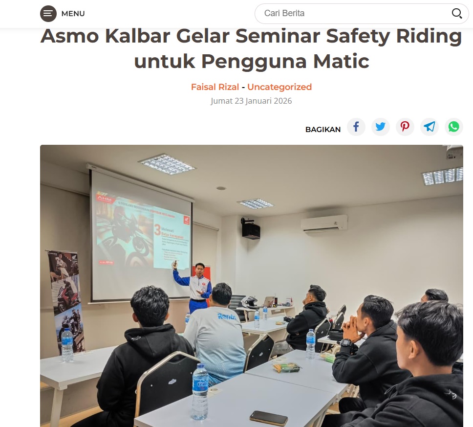 Asmo Kalbar Gelar Seminar Safety Riding untuk Pengguna Matic by Dodi Dodi 24 Januari 2026 in Silahkan kunjungi https://harianberkat.com/2026/01/23/asmo-kalbar-gelar-seminar-safety-riding-untuk-pengguna-matic/. You Might Like Regional Public Launching New ADV160 The SUV Pride Grand Launching New PCX 160 Truly Exceptional! Tetap hati-hati ya bro sist berkendara saat hujan.