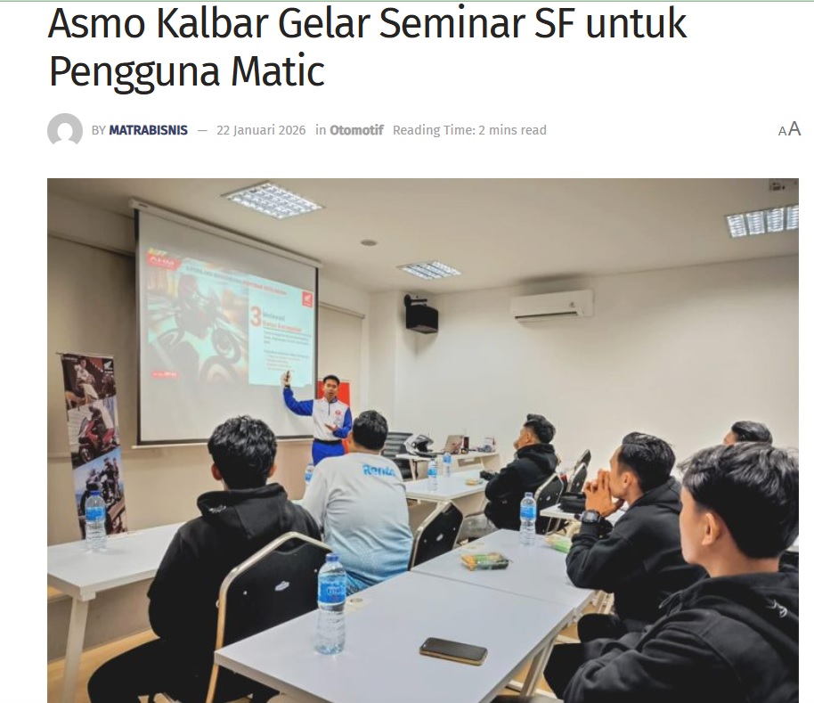 Asmo Kalbar Gelar Seminar SF untuk Pengguna Matic by Sri Yuliantiningsih 22 Januari 2026 in Silahkan kunjungi https://matrabisnis.id/2026/01/22/asmo-kalbar-gelar-seminar-sf-untuk-pengguna-matic/#google_vignette. You Might Like Regional Public Launching New ADV160 The SUV Pride Grand Launching New PCX 160 Truly Exceptional! Tetap hati-hati ya bro sist berkendara saat hujan.