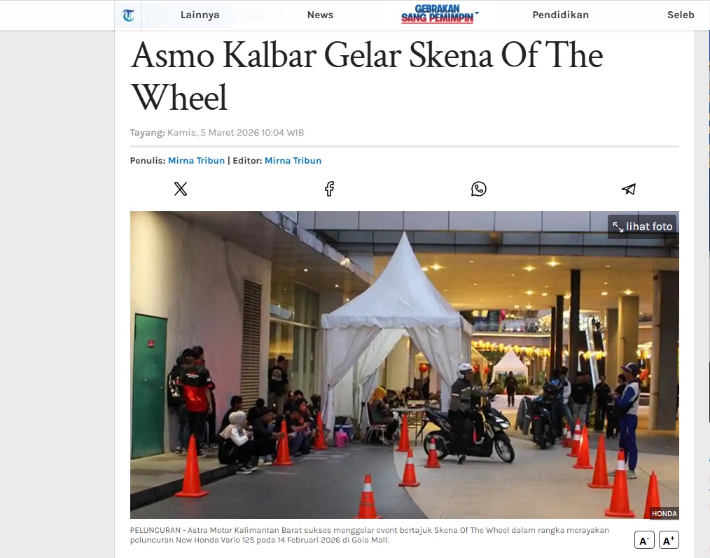 Asmo Kalbar Gelar Skena Of The Wheel by Nina Soraya 5 Maret 2026 in Silahkan kunjungi https://pontianak.tribunnews.com/otomotif/1164674/asmo-kalbar-gelar-skena-of-the-wheel. You Might Like Regional Public Launching New ADV160 The SUV Pride Grand Launching New PCX 160 Truly Exceptional! Tetap hati-hati ya bro sist berkendara saat hujan.