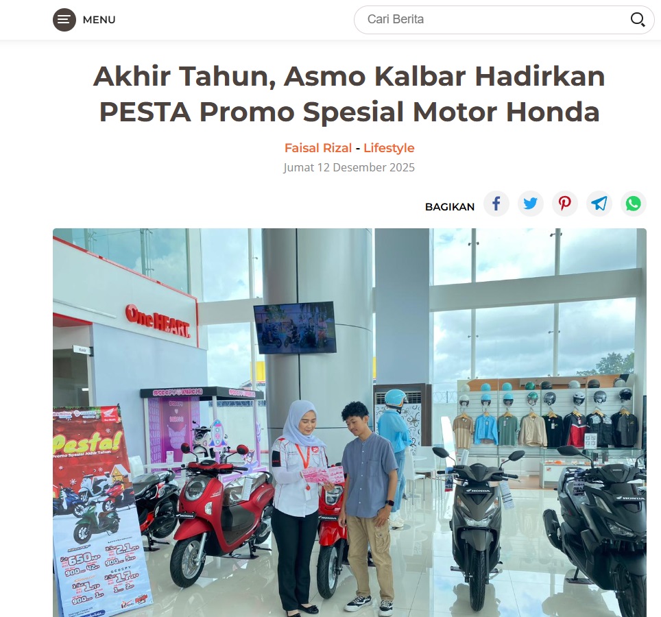 Asmo Kalbar Hadirkan PESTA Promo Spesial Motor Honda di Akhir Tahun by Dodi Dodi 12 Desember 2025 in Silahkan kunjungi https://harianberkat.com/2025/12/12/asmo-kalbar-hadirkan-pesta-promo-spesial-motor-honda-di-akhir-tahun/. You Might Like Regional Public Launching New ADV160 The SUV Pride Grand Launching New PCX 160 Truly Exceptional! Tetap hati-hati ya bro sist berkendara saat hujan.
