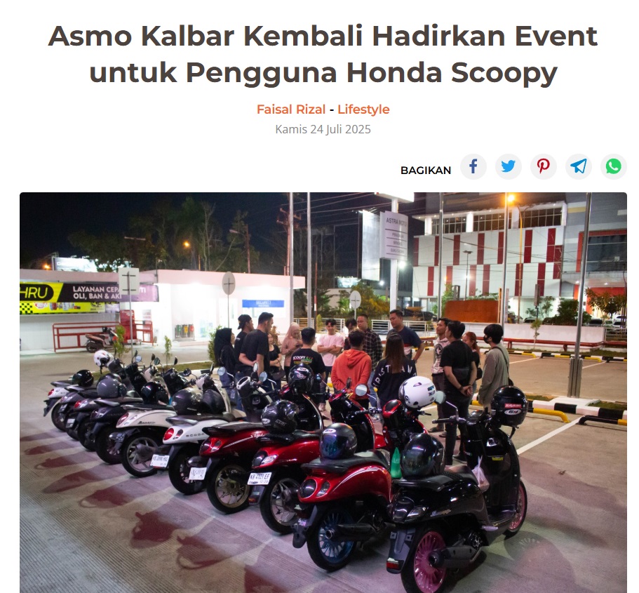 Asmo Kalbar Kembali Hadirkan Event untuk Pengguna Honda Scoopy by Dodi Dodi 24 Juli 2025 in Silahkan kunjungi https://harianberkat.com/2025/07/24/asmo-kalbar-kembali-hadirkan-event-untuk-pengguna-honda-scoopy/#google_vignette. You Might Like Regional Public Launching New ADV160 The SUV Pride Grand Launching New PCX 160 Truly Exceptional! Tetap hati-hati ya bro sist berkendara saat hujan.