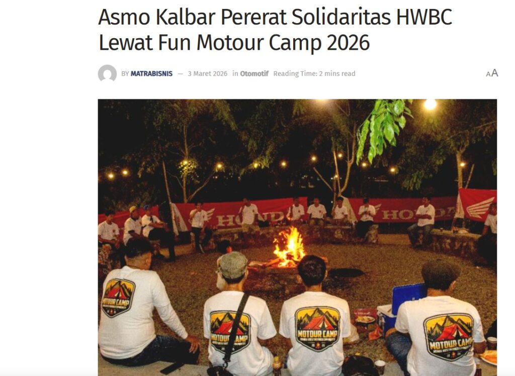 Asmo Kalbar Pererat Solidaritas HWBC Lewat Fun Motour Camp 2026 by Sri Yuliantiningsih 3 Maret 2026 in Silahkan kunjungi https://matrabisnis.id/2026/03/03/asmo-kalbar-pererat-solidaritas-hwbc-lewat-fun-motour-camp-2026/. You Might Like Regional Public Launching New ADV160 The SUV Pride Grand Launching New PCX 160 Truly Exceptional! Tetap hati-hati ya bro sist berkendara saat hujan.