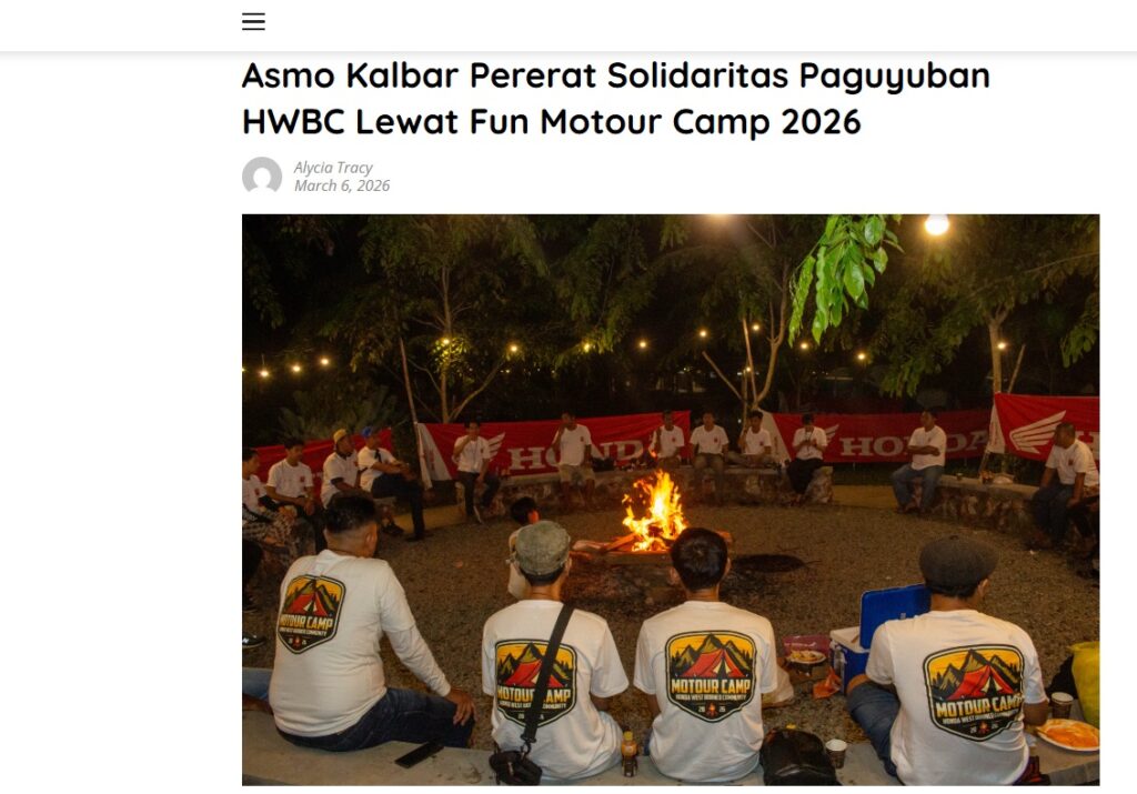 Asmo Kalbar Pererat Solidaritas Paguyuban HWBC Lewat Fun Motour Camp 2026 by Tracy 6 Maret 2026 in Silahkan kunjungi https://hipontianak.com/asmo-kalbar-pererat-solidaritas-paguyuban-hwbc-lewat-fun-motour-camp-2026/. You Might Like Regional Public Launching New ADV160 The SUV Pride Grand Launching New PCX 160 Truly Exceptional! Tetap hati-hati ya bro sist berkendara saat hujan.