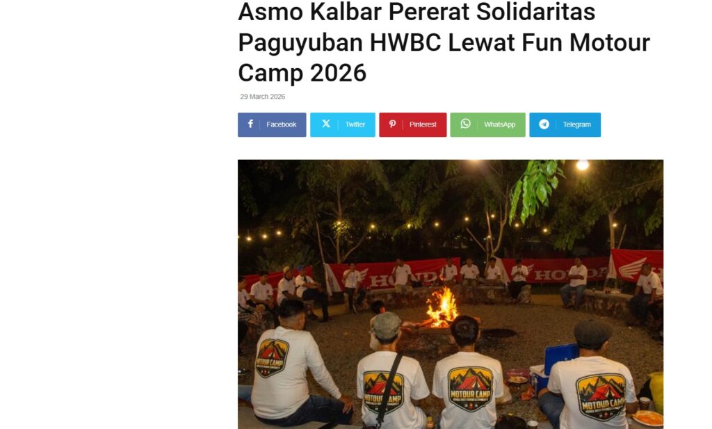 Asmo Kalbar Pererat Solidaritas Paguyuban HWBC Lewat Fun Motour Camp 2026 by Nova Sari 29 Maret 2026 in Silahkan kunjungi https://equator.co.id/asmo-kalbar-pererat-solidaritas-paguyuban-hwbc-lewat-fun-motour-camp-2026/. You Might Like Regional Public Launching New ADV160 The SUV Pride Grand Launching New PCX 160 Truly Exceptional! Tetap hati-hati ya bro sist berkendara saat hujan.