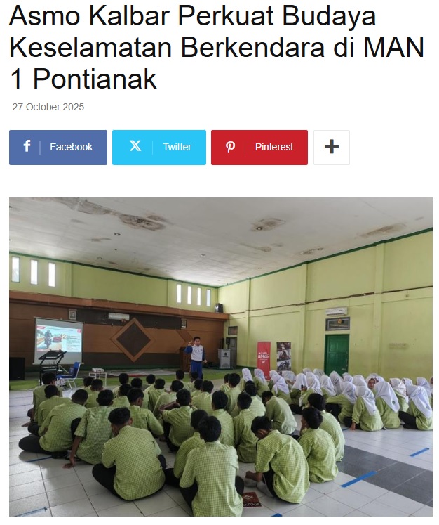 Asmo Kalbar Perkuat Budaya Keselamatan Berkendara di MAN 1 Pontianak by Nova Sari 27 Oktober 2025 in Silahkan kunjungi https://equator.co.id/asmo-kalbar-perkuat-budaya-keselamatan-berkendara-di-man-1-pontianak/. You Might Like Regional Public Launching New ADV160 The SUV Pride Grand Launching New PCX 160 Truly Exceptional! Tetap hati-hati ya bro sist berkendara saat hujan.