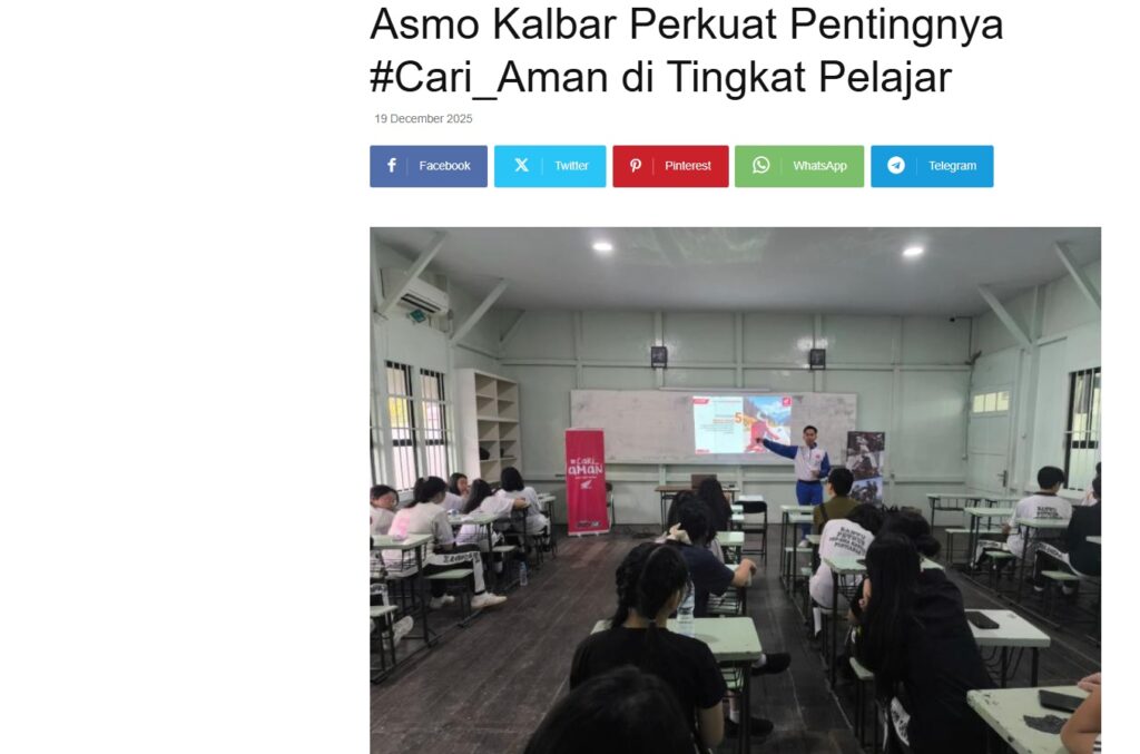Asmo Kalbar Perkuat Pentingnya #Cari_Aman di Tingkat Pelajar by Nova Sari 19 Desember 2025 in Silahkan kunjungi https://equator.co.id/asmo-kalbar-perkuat-pentingnya-cari_aman-di-tingkat-pelajar/. You Might Like Regional Public Launching New ADV160 The SUV Pride Grand Launching New PCX 160 Truly Exceptional! Tetap hati-hati ya bro sist berkendara saat hujan.
