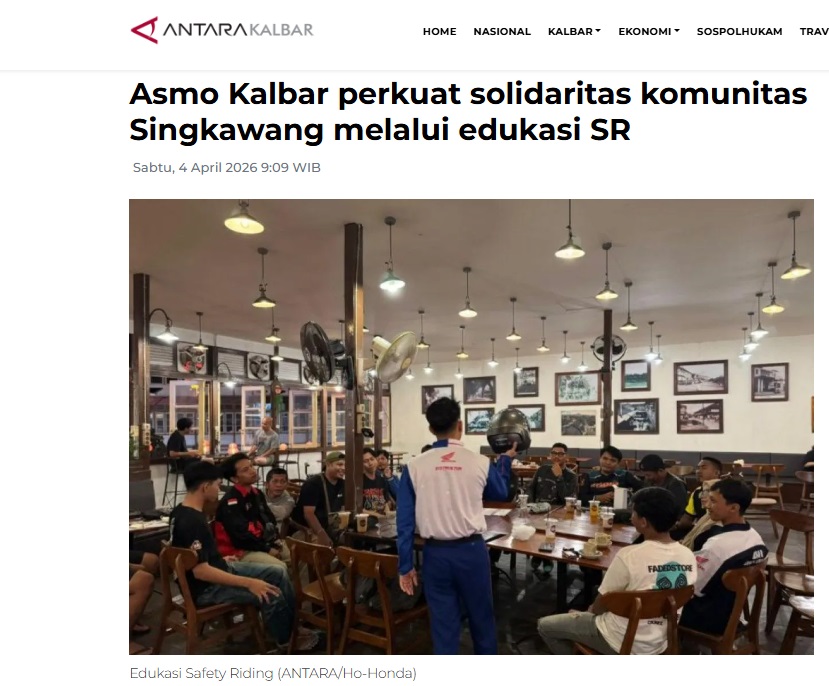 Asmo Kalbar perkuat solidaritas komunitas Singkawang melalui edukasi SR by Dedi 4 April 2026 in Silahkan kunjungi https://kalbar.antaranews.com/berita/696945/asmo-kalbar-perkuat-solidaritas-komunitas-singkawang-melalui-edukasi-sr. You Might Like Regional Public Launching New ADV160 The SUV Pride Grand Launching New PCX 160 Truly Exceptional! Tetap hati-hati ya bro sist berkendara saat hujan.
