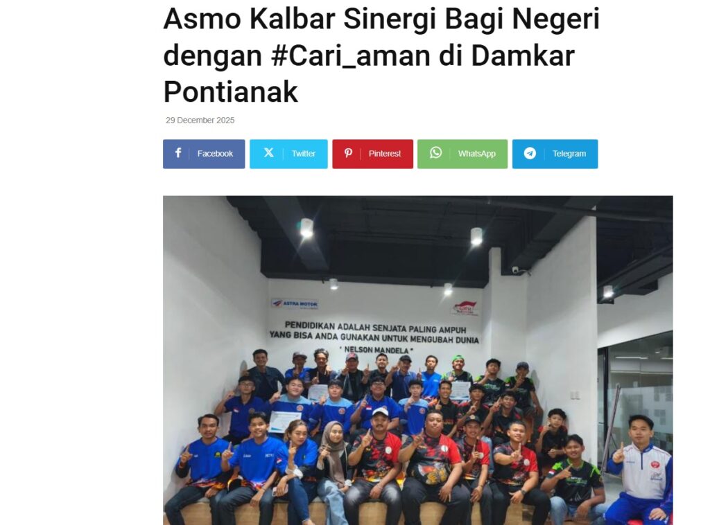 Asmo Kalbar Sinergi Bagi Negeri dengan #Cari_aman di Damkar Pontianak by Nova Sari 29 Desember 2025 in Silahkan kunjungi https://equator.co.id/asmo-kalbar-sinergi-bagi-negeri-dengan-cari_aman-di-damkar-pontianak/. You Might Like Regional Public Launching New ADV160 The SUV Pride Grand Launching New PCX 160 Truly Exceptional! Tetap hati-hati ya bro sist berkendara saat hujan.