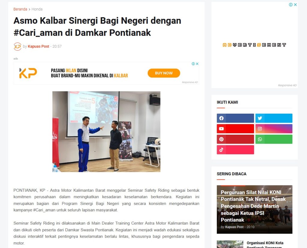 Asmo Kalbar Sinergi Bagi Negeri dengan #Cari_aman di Damkar Pontianak by Muhammad Arif 20 Desember 2025 in Silahkan kunjungi https://www.kapuaspost.web.id/2025/12/asmo-kalbar-sinergi-bagi-negeri-dengan.html. Tags: astra Astra Motor kalbar Astra Motor Pontianak astramotor honda kalbar pontianak sepeda motor You Might Like Regional Public Launching New ADV160 The SUV Pride Grand Launching New PCX 160 Truly Exceptional! Tetap hati-hati ya bro sist berkendara saat hujan.