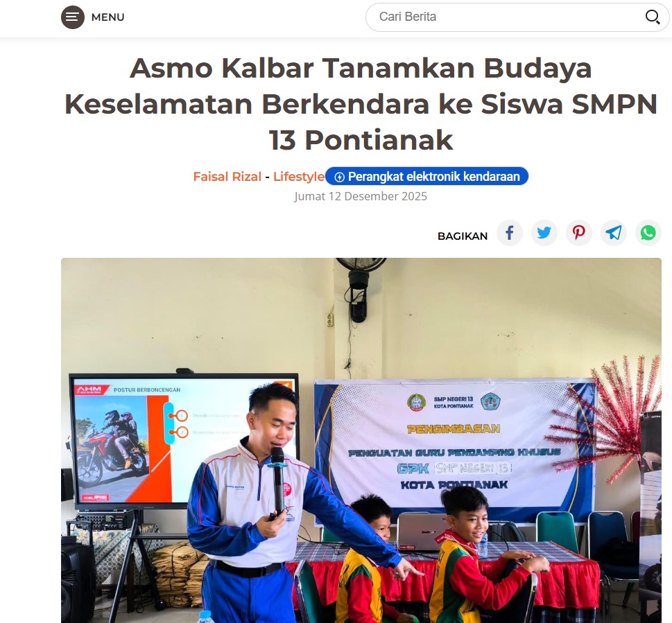 Asmo Kalbar Tanamkan Budaya Keselamatan Berkendara ke Siswa SMPN 13 Pontianak by Dodi Dodi 12 Desember 2025 in Silahkan kunjungi https://harianberkat.com/2025/12/12/asmo-kalbar-tanamkan-budaya-keselamatan-berkendara-ke-siswa-smpn-13-pontianak/. You Might Like Regional Public Launching New ADV160 The SUV Pride Grand Launching New PCX 160 Truly Exceptional! Tetap hati-hati ya bro sist berkendara saat hujan.