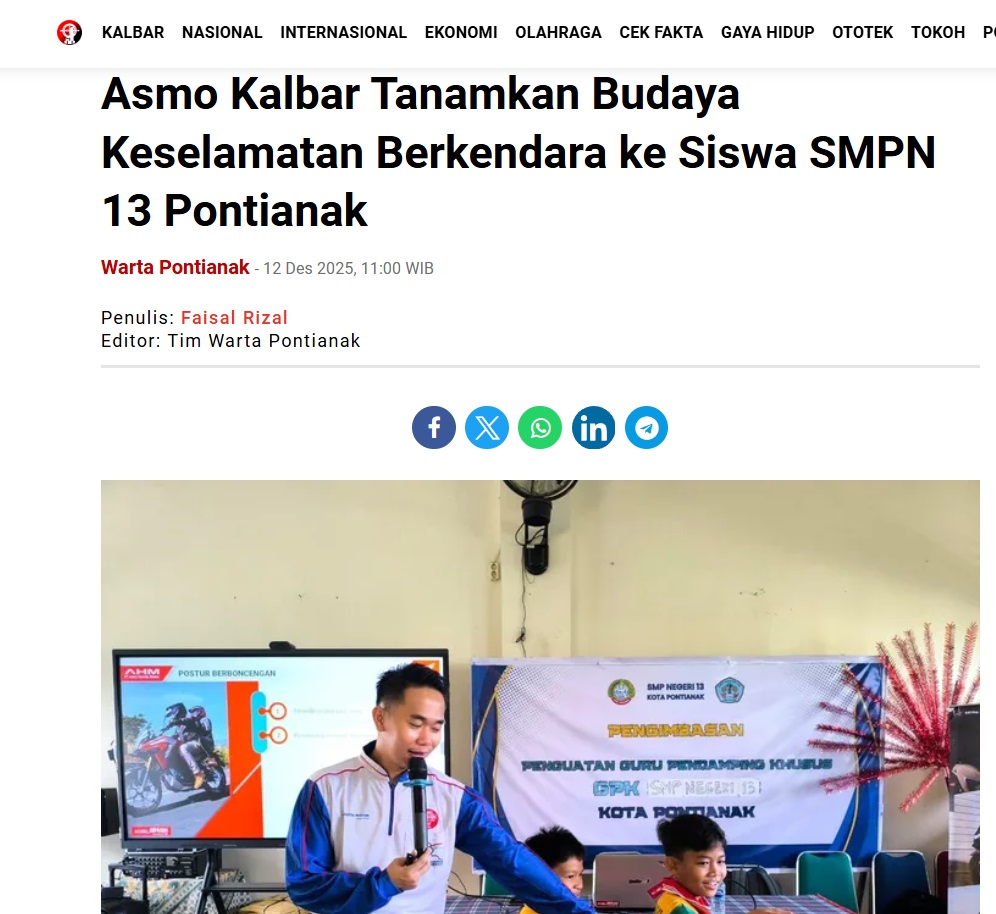 Asmo Kalbar Tanamkan Budaya Keselamatan Berkendara ke Siswa SMPN 13 Pontianak by Faisal Rizal 12 Desember 2025 in Silahkan kunjungi https://wartapontianak.pikiran-rakyat.com/gaya-hidup/pr-1179856845/asmo-kalbar-tanamkan-budaya-keselamatan-berkendara-ke-siswa-smpn-13-pontianak. You Might Like Regional Public Launching New ADV160 The SUV Pride Grand Launching New PCX 160 Truly Exceptional! Tetap hati-hati ya bro sist berkendara saat hujan.
