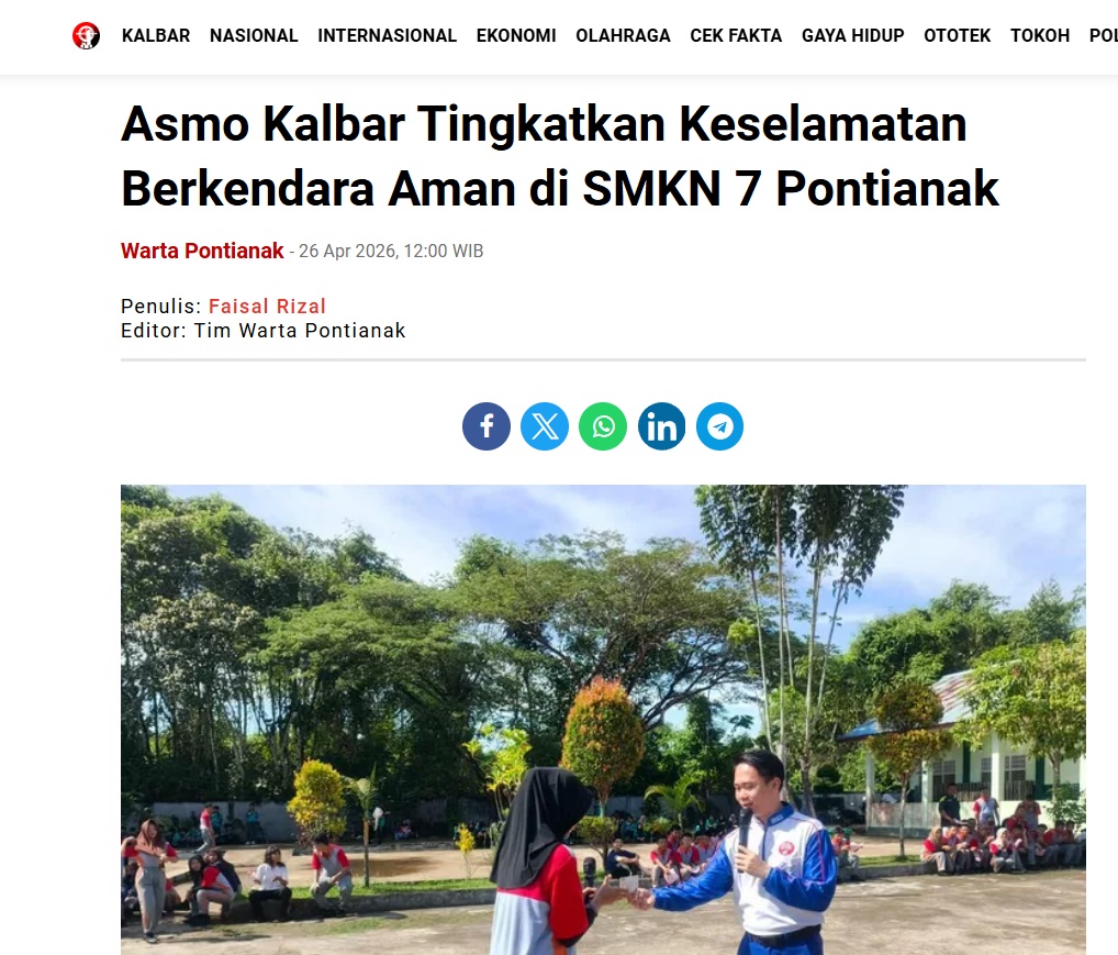 Asmo Kalbar Tingkatkan Keselamatan Berkendara Aman di SMKN 7 Pontianak by Faisal Rizal 26 April 2026 in Silahkan kunjungi https://wartapontianak.pikiran-rakyat.com/gaya-hidup/pr-11710166242/asmo-kalbar-tingkatkan-keselamatan-berkendara-aman-di-smkn-7-pontianak. You Might Like Regional Public Launching New ADV160 The SUV Pride Grand Launching New PCX 160 Truly Exceptional! Tetap hati-hati ya bro sist berkendara saat hujan.